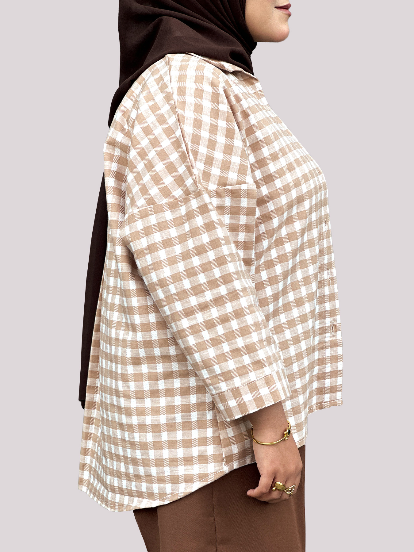 Introduce timeless charm to your wardrobe with this brown and white checkered shirt, designed for effortless sophistication. The warm brown tones create a rich, refined feel, while the classic check pattern adds subtle character without overwhelming your look.