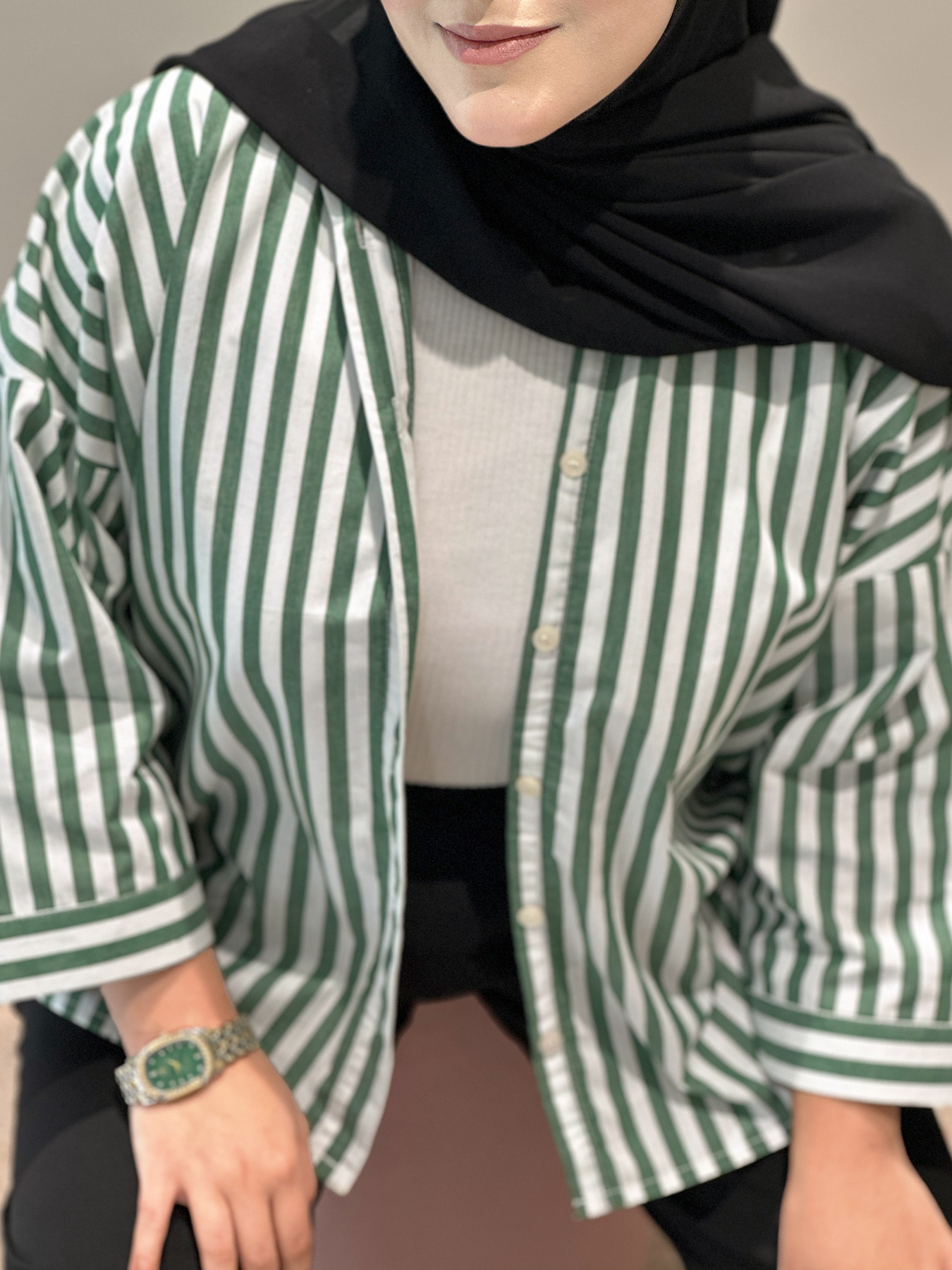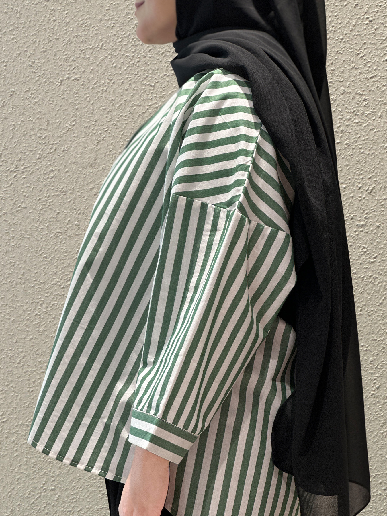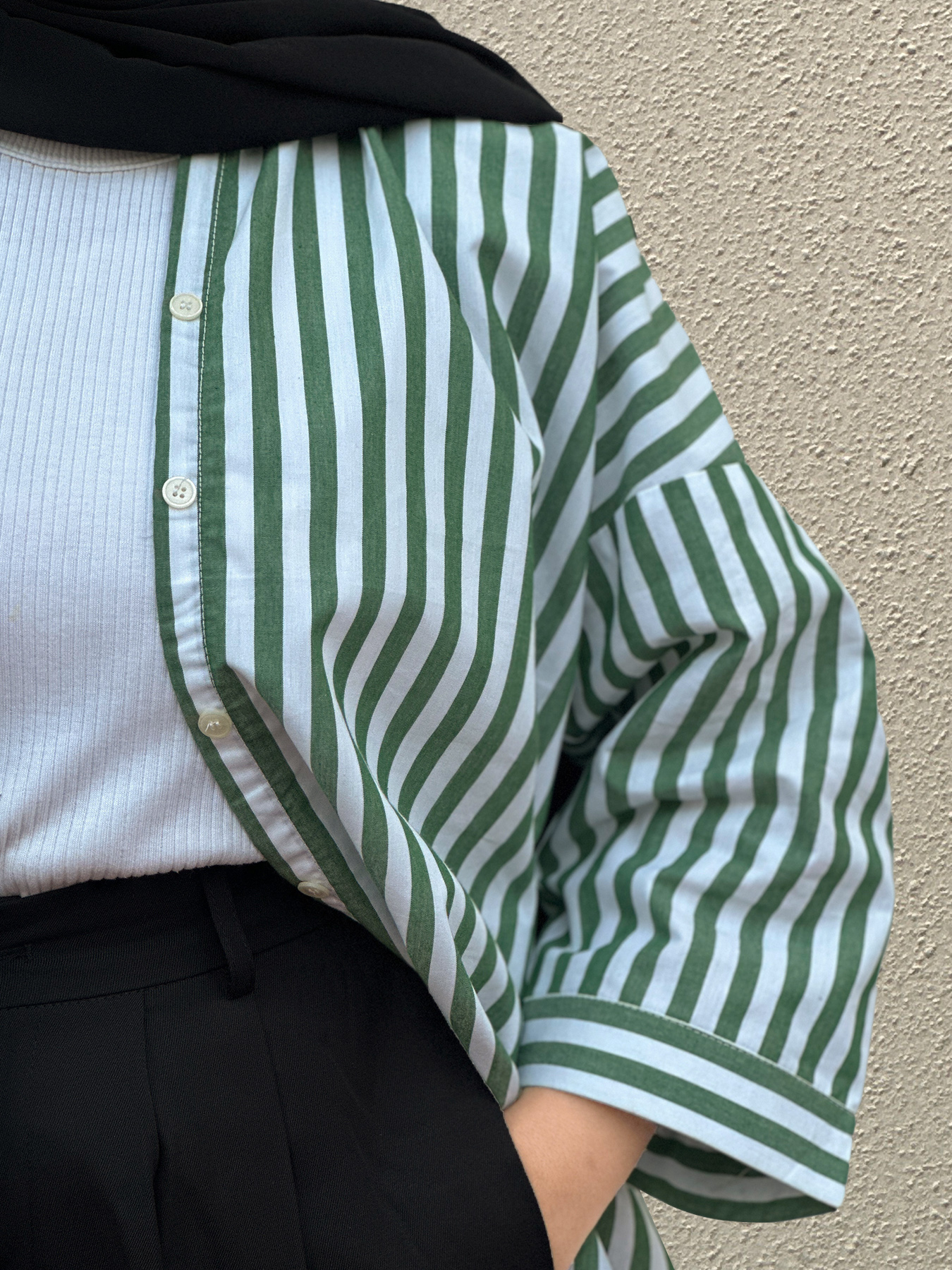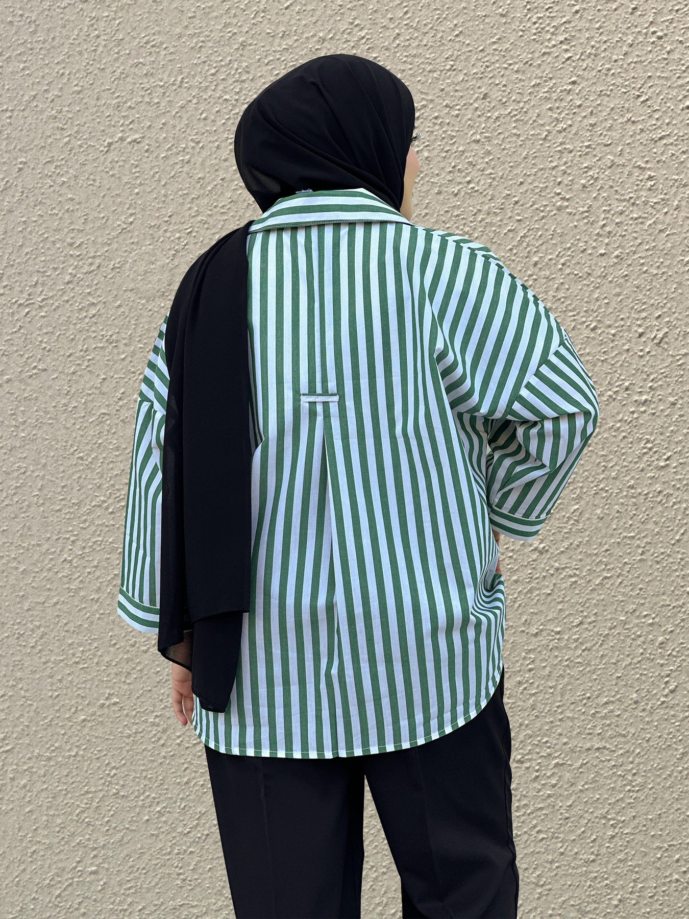 Bring effortless charm to your everyday wardrobe with this statement striped shirt in refreshing green and white tones. Designed with clean vertical lines and a relaxed silhouette, this piece offers a perfect balance of structure and comfort. The front button detailing enhances its classic appeal, while the airy fabric keeps it light and breathable throughout the day.
